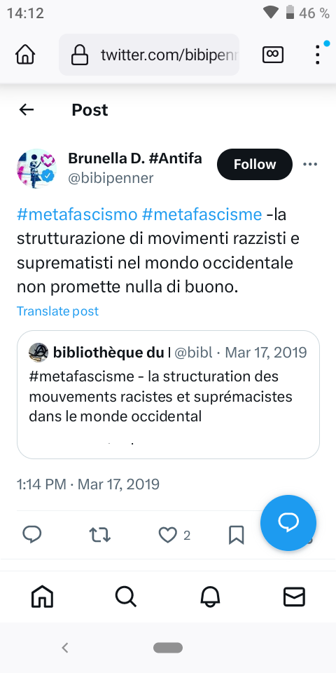 Raison pour laquelle je suppose, mon tweet avait attiré l’attention d’une militante antifasciste italienne