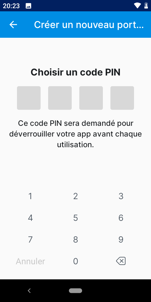 Pour finir de configurer votre portefeuille, choisissez un code à 4 chiffres