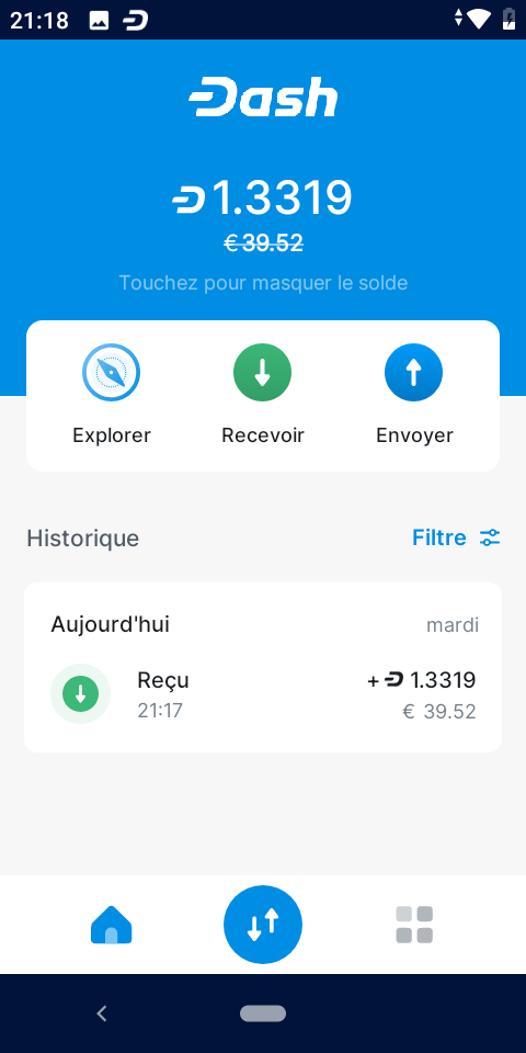 et votre portefeuille sera crédité d’un petit montant en dashTestnet -
